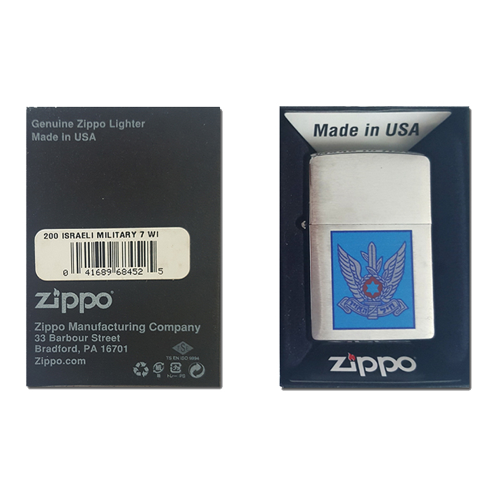 200 ISRAELI MILITARY 7 WI Brand new Zippo in A box - A classic Zippo Brushed chrome finish with picture of Israeli "Air and Space Arm", commonly known as "Air Corps") emblem. This lighter is perfect for everyday use or even the avid Zippo collector.