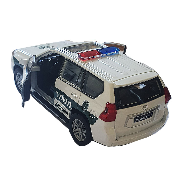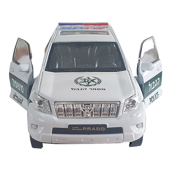 The Israeli Border Gurd Police 23-2024 Toyota Land Cruiser Frado (J250) with a 2.8 turbo diesel engine 204 hp, Diecast Toy Vehicle 1:38 Pull back car Replica Marked with symbols of the Border Gurd Police.