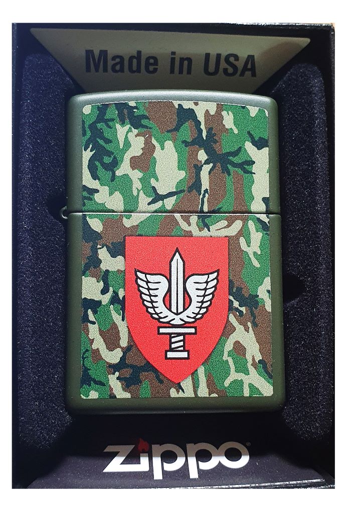 ZIPPO 221 KFIR ISRAELI FLAG Classic Green Matte with the Kfir Brigade emblem on a camouflage background Symbol Print.